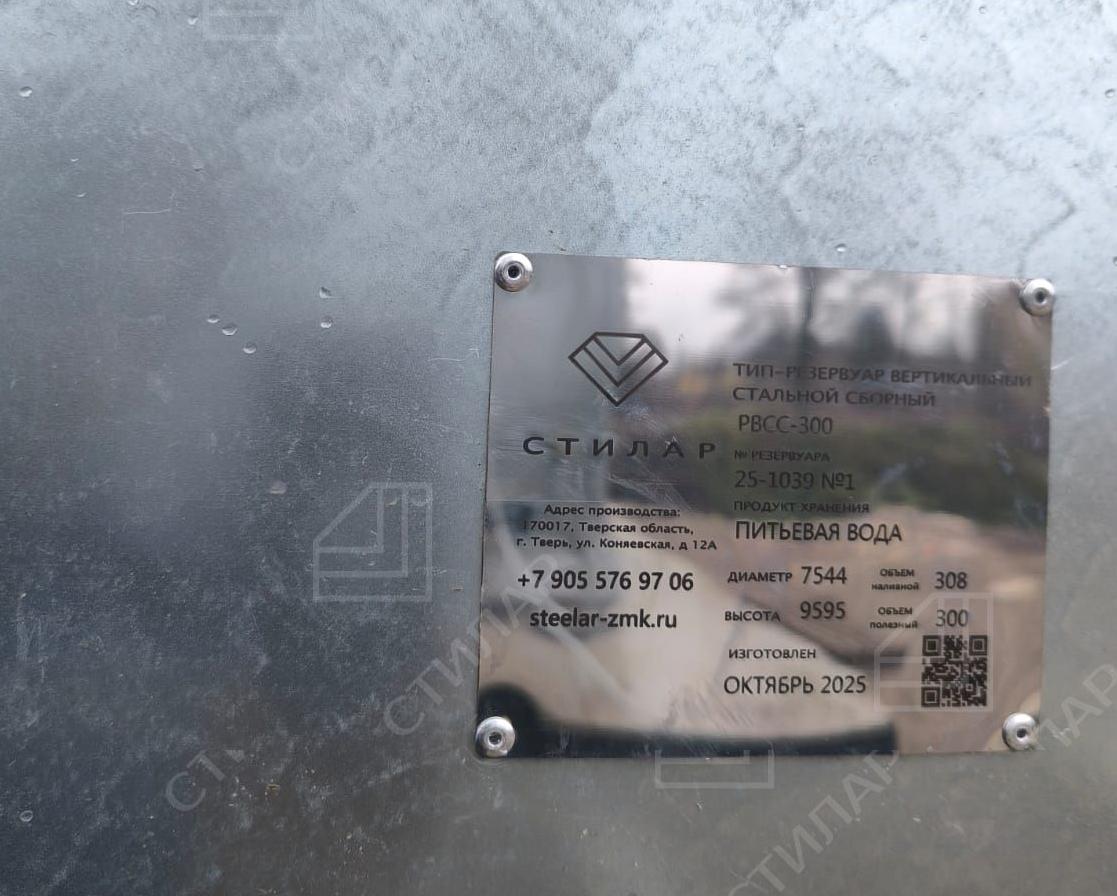 Вертикальный резервуар для питьевой воды, объем 300 м³, срок 75 дней от Стилар